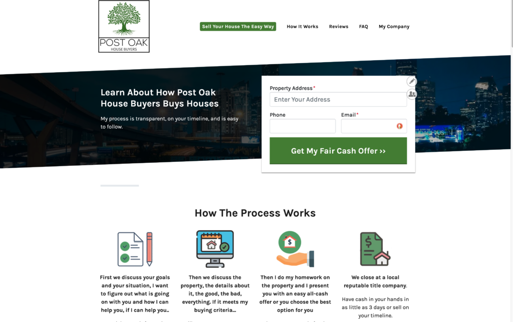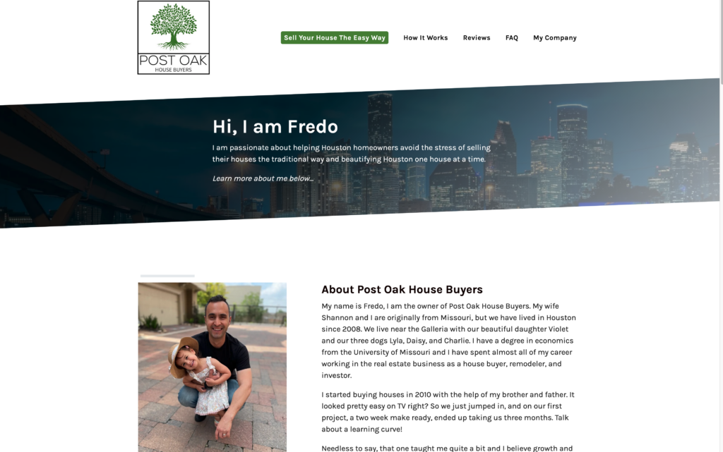 I own Post Oak House Buyers! As a cash home buyer and real estate professional, I buy houses anywhere in Houston and other parts of TX. My house buying process is simple and, as a bonus, I can present other options too.